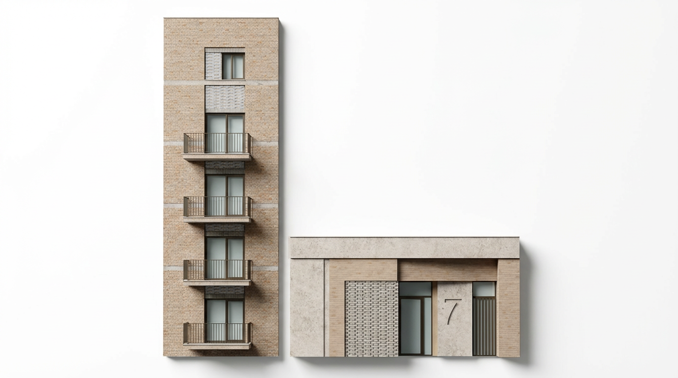 Inside the building, the residential layouts have been optimised through several design iterations, increasing the number of dual‑aspect homes and ensuring every apartment benefits from private external amenity. Light‑toned balcony reveals help reflect daylight deeper into living spaces that face north, addressing overshadowing created by surrounding taller buildings. Several flats are designed to meet modern accessibility standards, and circulation is arranged to provide a clear and legible route from street to apartment.