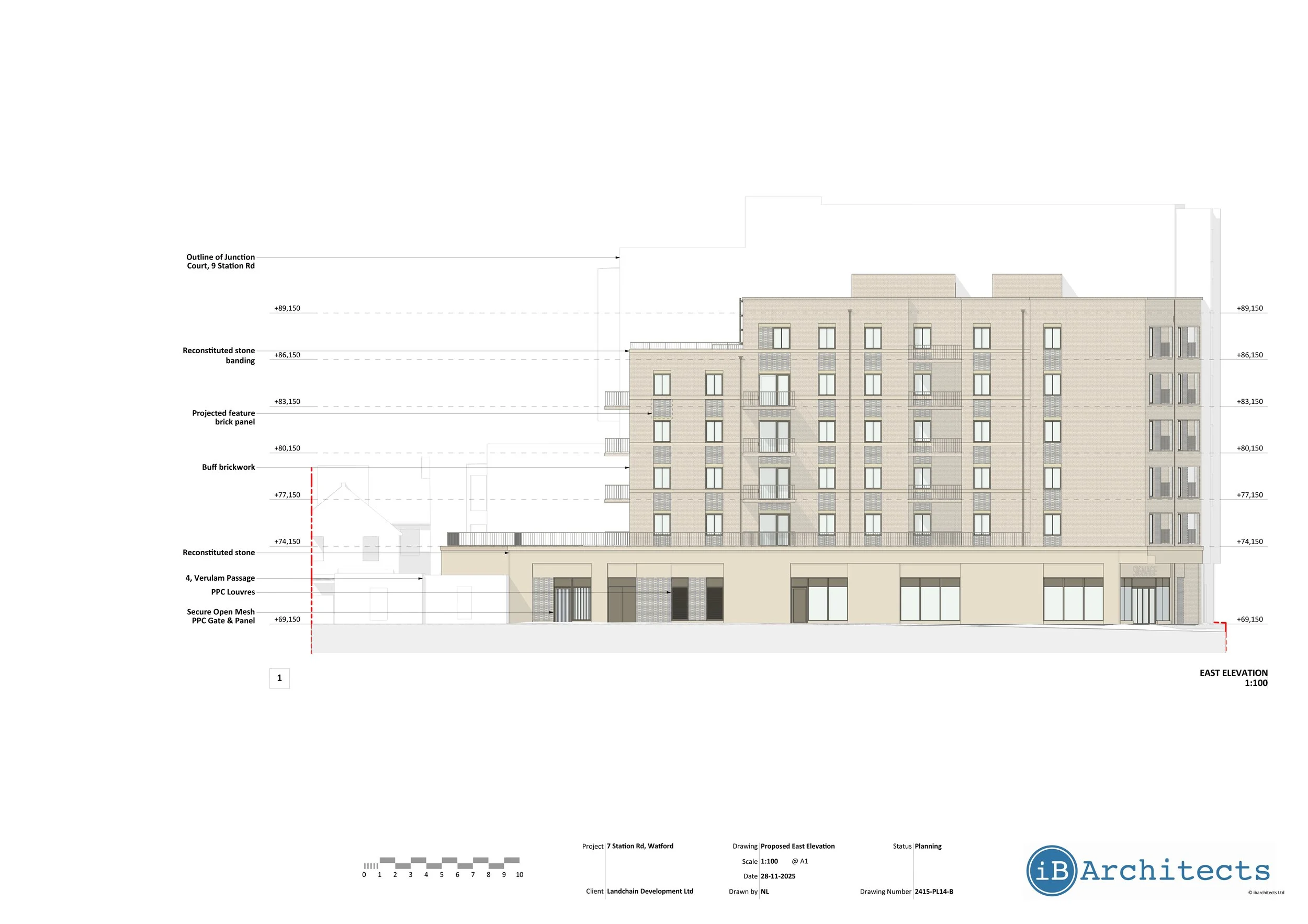 7 Station Road is a planning submission for the redevelopment of a long‑vacant 1960s former bank opposite Watford Junction Station. The proposal replaces an underused building with a contemporary mixed‑use scheme that introduces flexible commercial space at ground floor and 24 new apartments above, while improving the public realm and addressing several long‑standing constraints on this prominent gateway site.